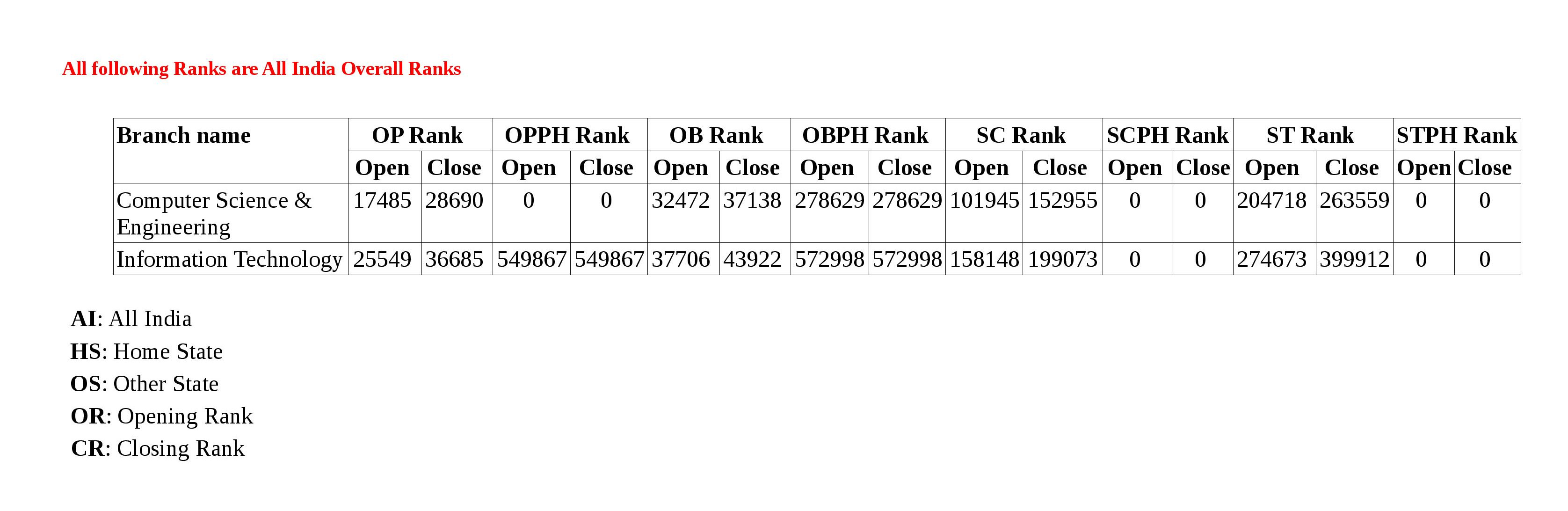 2015 constituted by the Government of India. The Institute does not conduct its own entrance examination. The admissions are purely based on All India Ranking (AIR) announced by the Central Board for Secondary Education (CBSE). There is no quota for Home State or for NRI. The only reservation available is for Scheduled Castes, Scheduled Tribes, Other Backward Classes featuring in the list of Government of India and for the PH category.